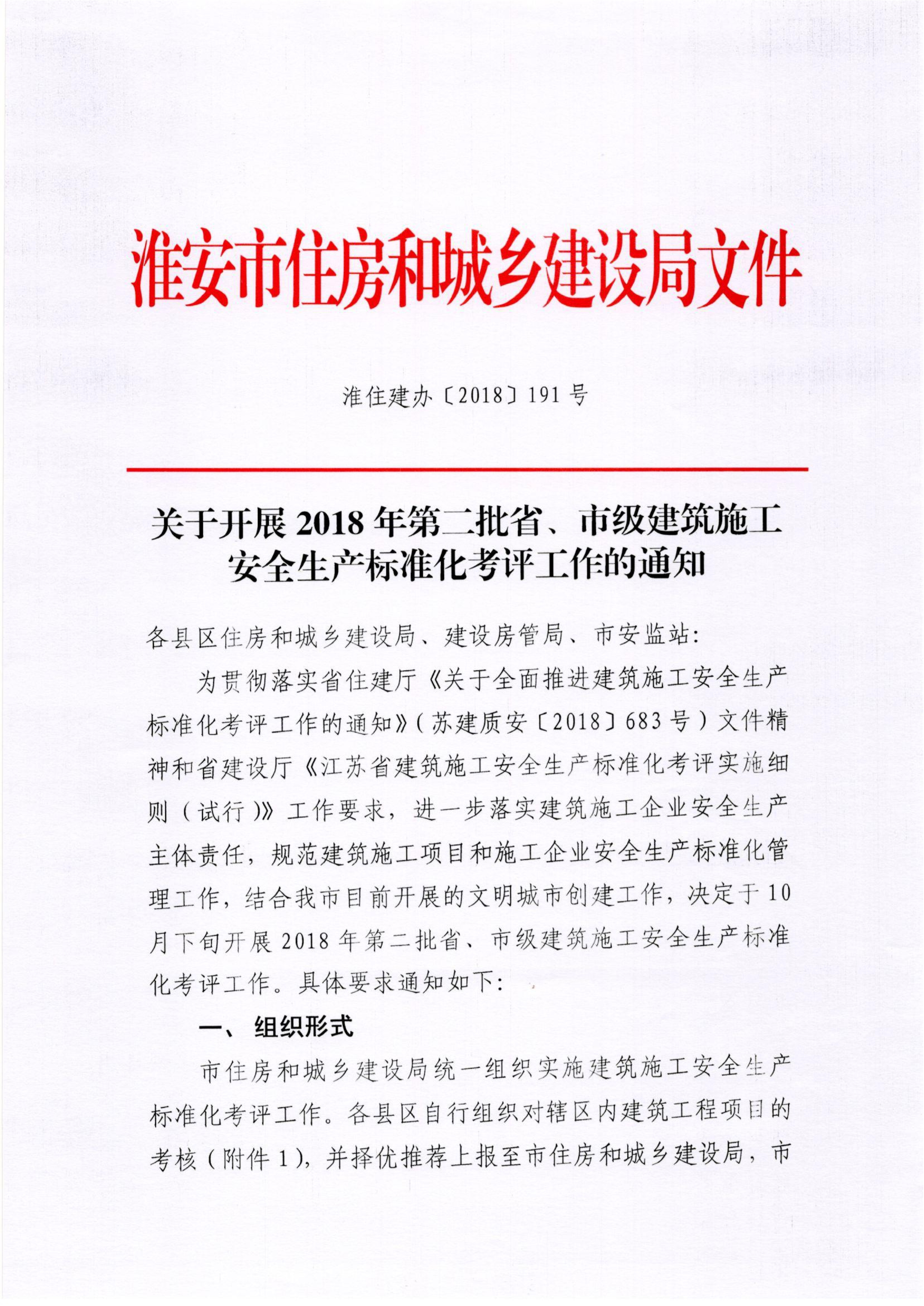 關(guān)于開展2018年第二批省、市級建筑施工安全生產(chǎn)標(biāo)準(zhǔn)化考評工作的通知