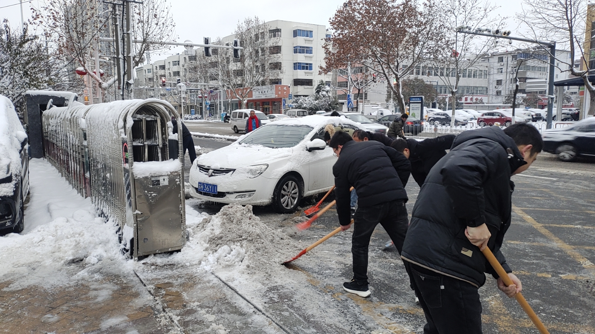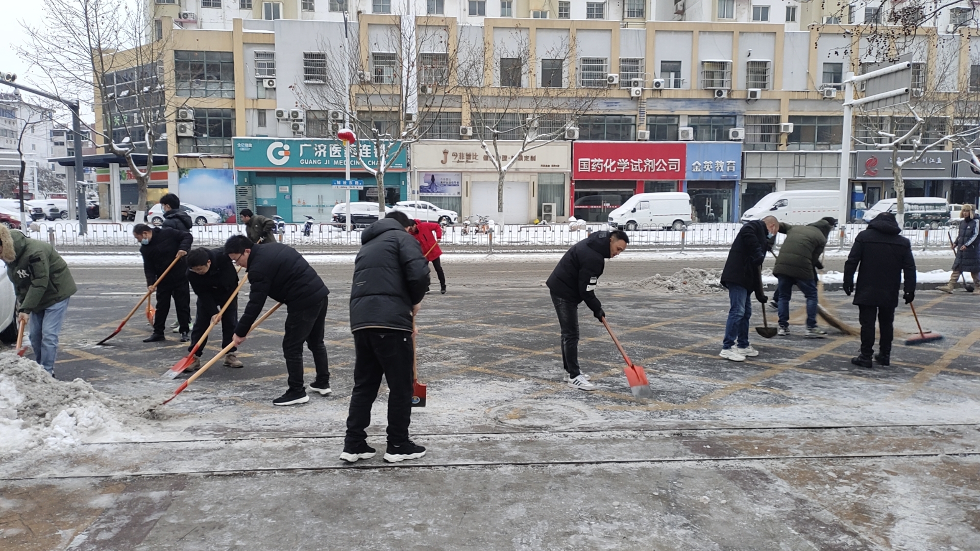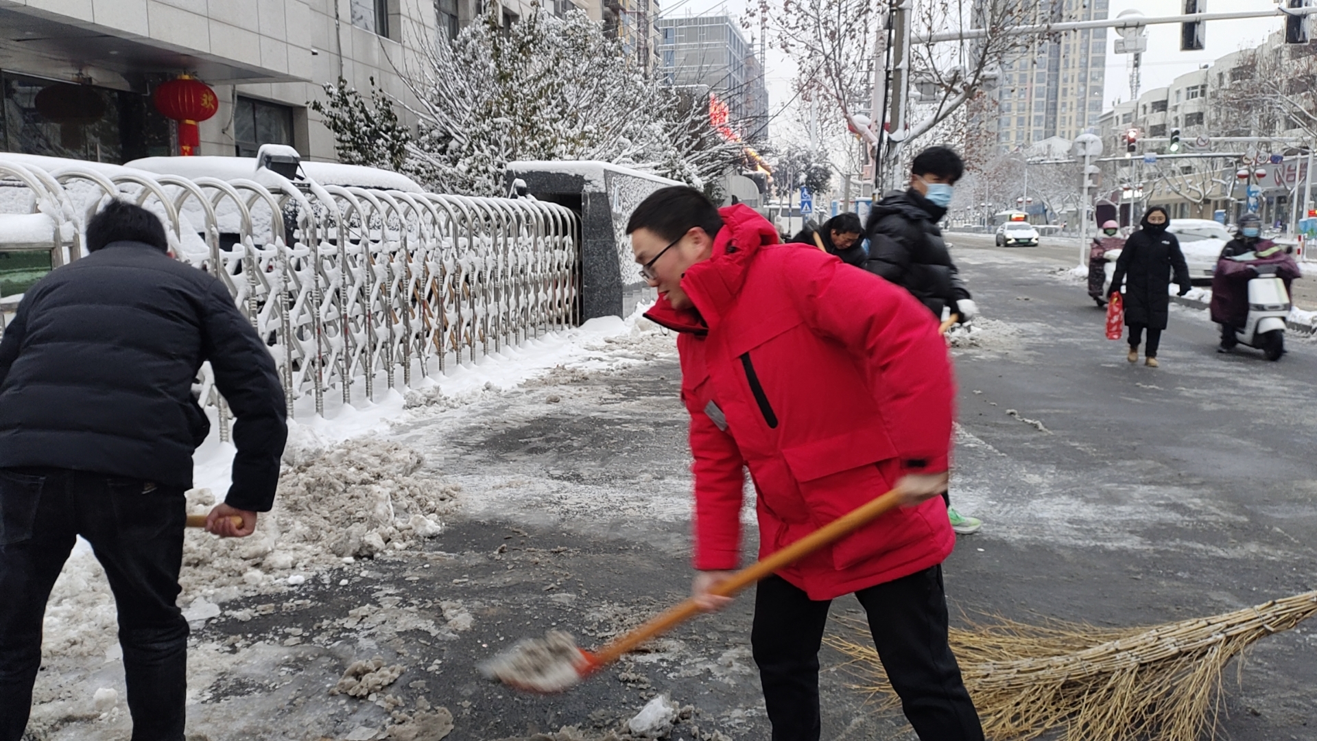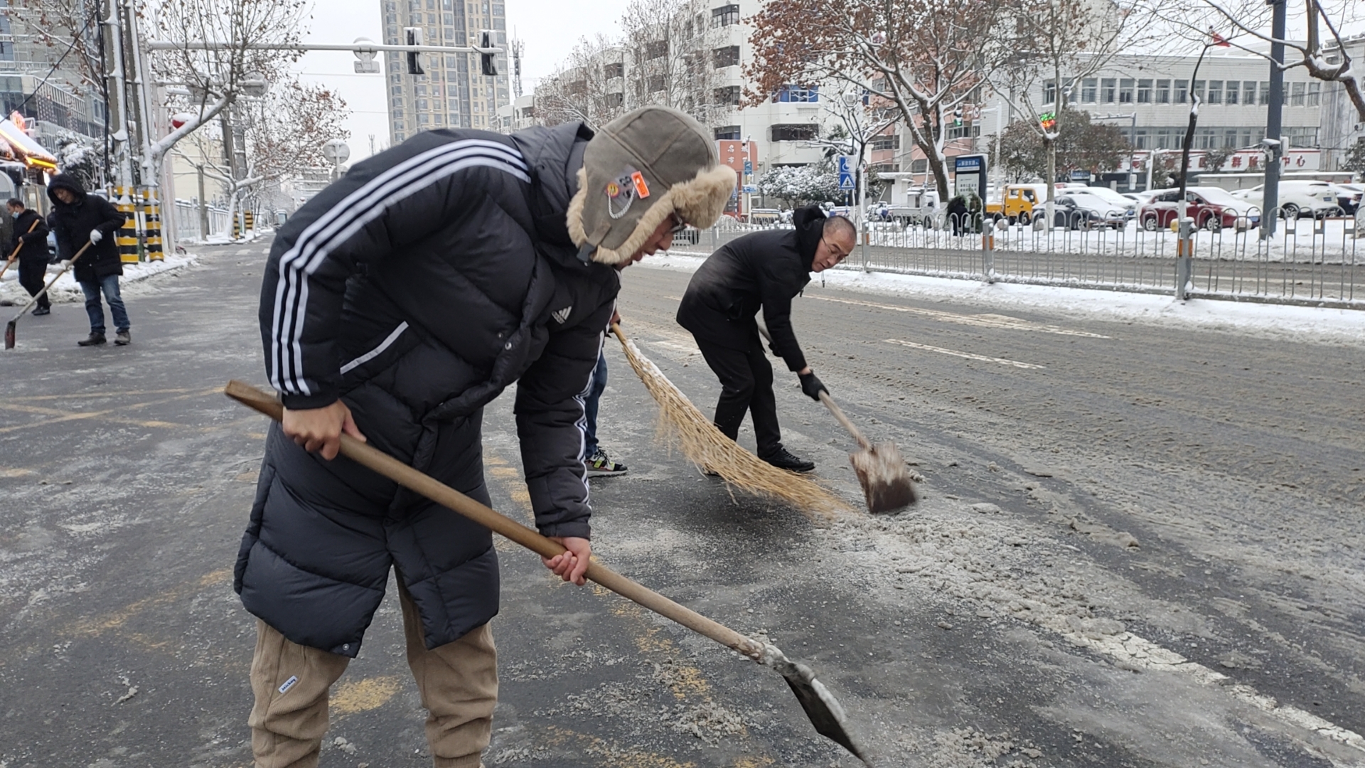 清晨,北方路橋青年突擊隊(duì)已奮戰(zhàn)在解放東路上,他們不懼嚴(yán)寒,行動(dòng)迅速,拿著鐵鍬、揮著掃帚等工具,以最快的速度清掃積雪,為群眾出行開辟出一條“平安路、暢通路”。