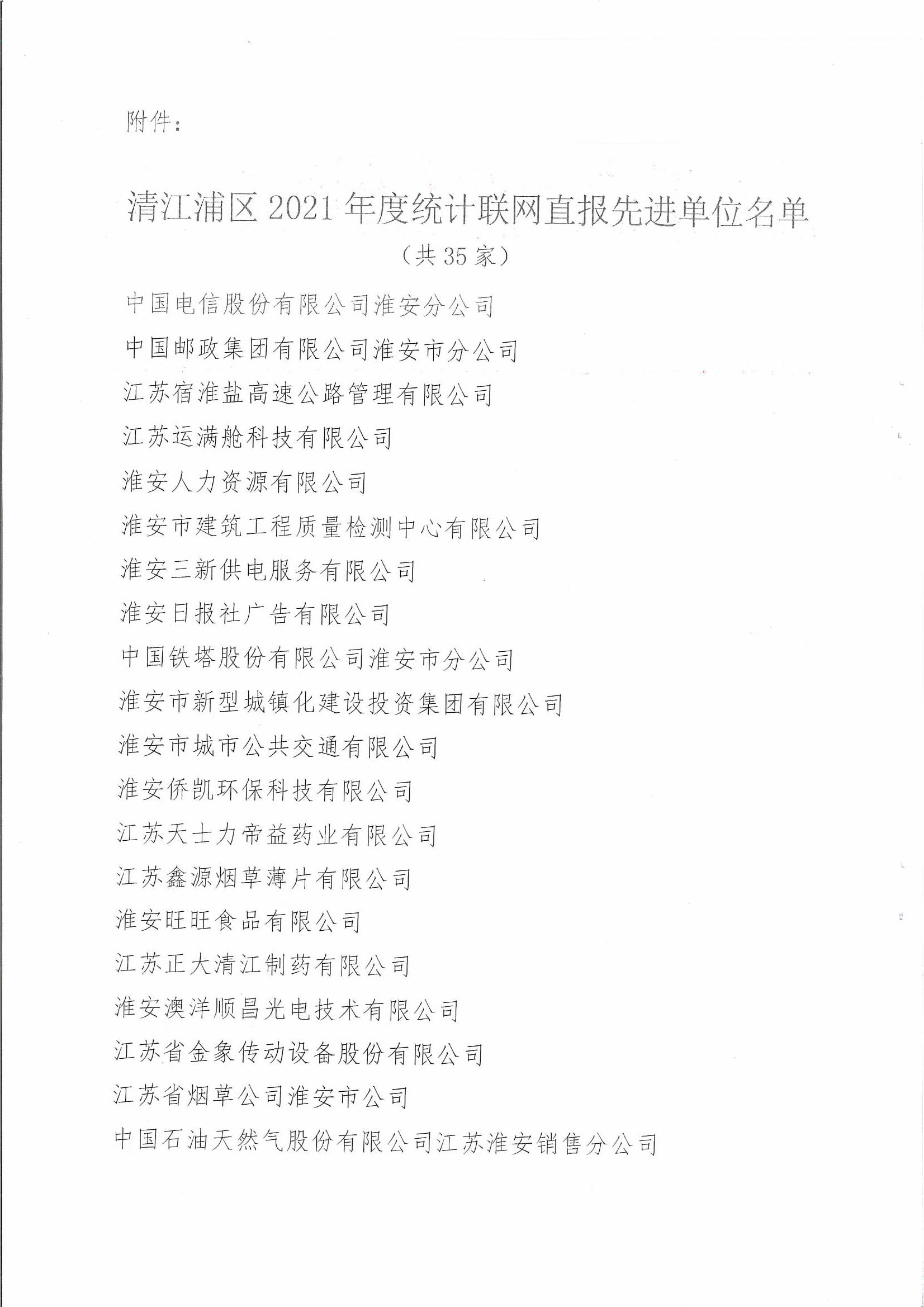 清江浦區(qū)2021年度統(tǒng)計聯(lián)網(wǎng)直報工作,我公司榮獲先進單位稱號。成績的取得,飽含著統(tǒng)計人辛勤耕耘、默默奉獻的辛勞和汗水,凝結(jié)著統(tǒng)計人勵精圖治、奮發(fā)有為的勇氣和擔當,傾注著統(tǒng)計人自我加壓、艱苦奮斗的執(zhí)著和情懷。