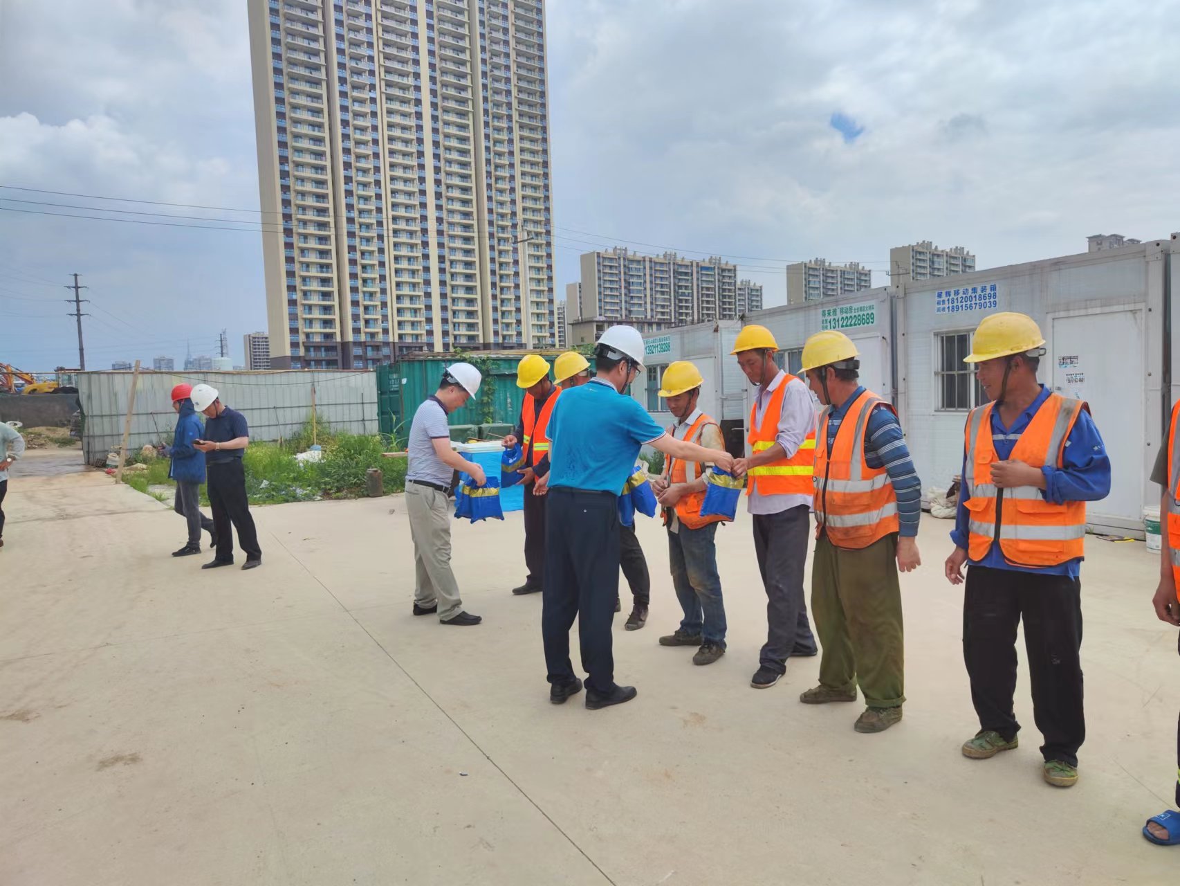 烈日當(dāng)空,驕陽(yáng)似火。2022年6月22日上午10點(diǎn),北方路橋董事長(zhǎng)楊龍、總經(jīng)理蔣其廣、副總經(jīng)理徐波一行赴江陰花北路橋現(xiàn)場(chǎng)調(diào)研,實(shí)地會(huì)辦推進(jìn)工程項(xiàng)目建設(shè)并看望、慰問(wèn)在高溫下的依舊堅(jiān)守的現(xiàn)場(chǎng)施工人員,為他們送去防暑降溫慰問(wèn)品,并向他們的不懈努力和辛勤付出表示了誠(chéng)摯的感謝和崇高的敬意。