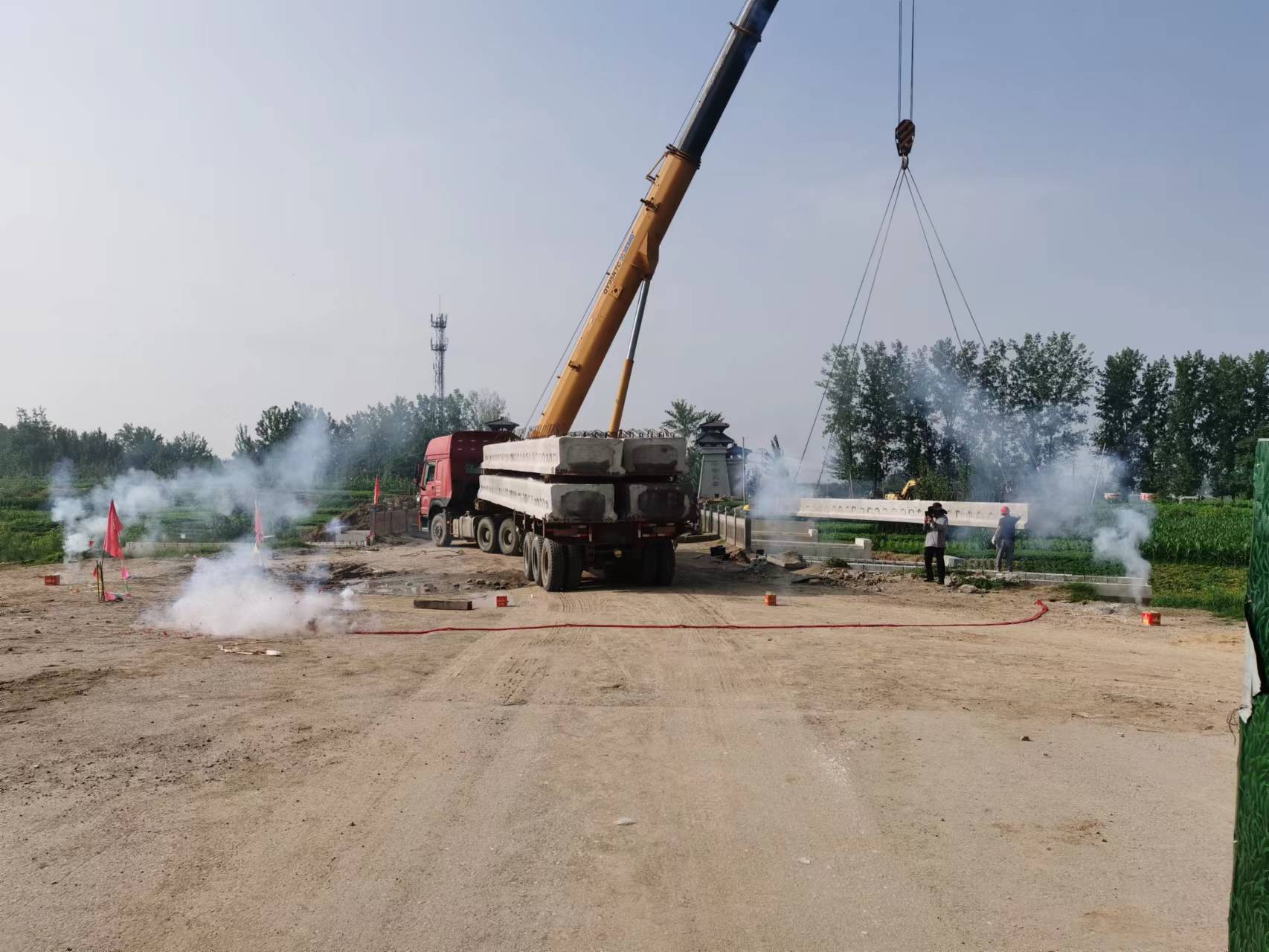 7月14日,山東菏鄄路小留南橋吊裝橋板作業(yè)現(xiàn)場。