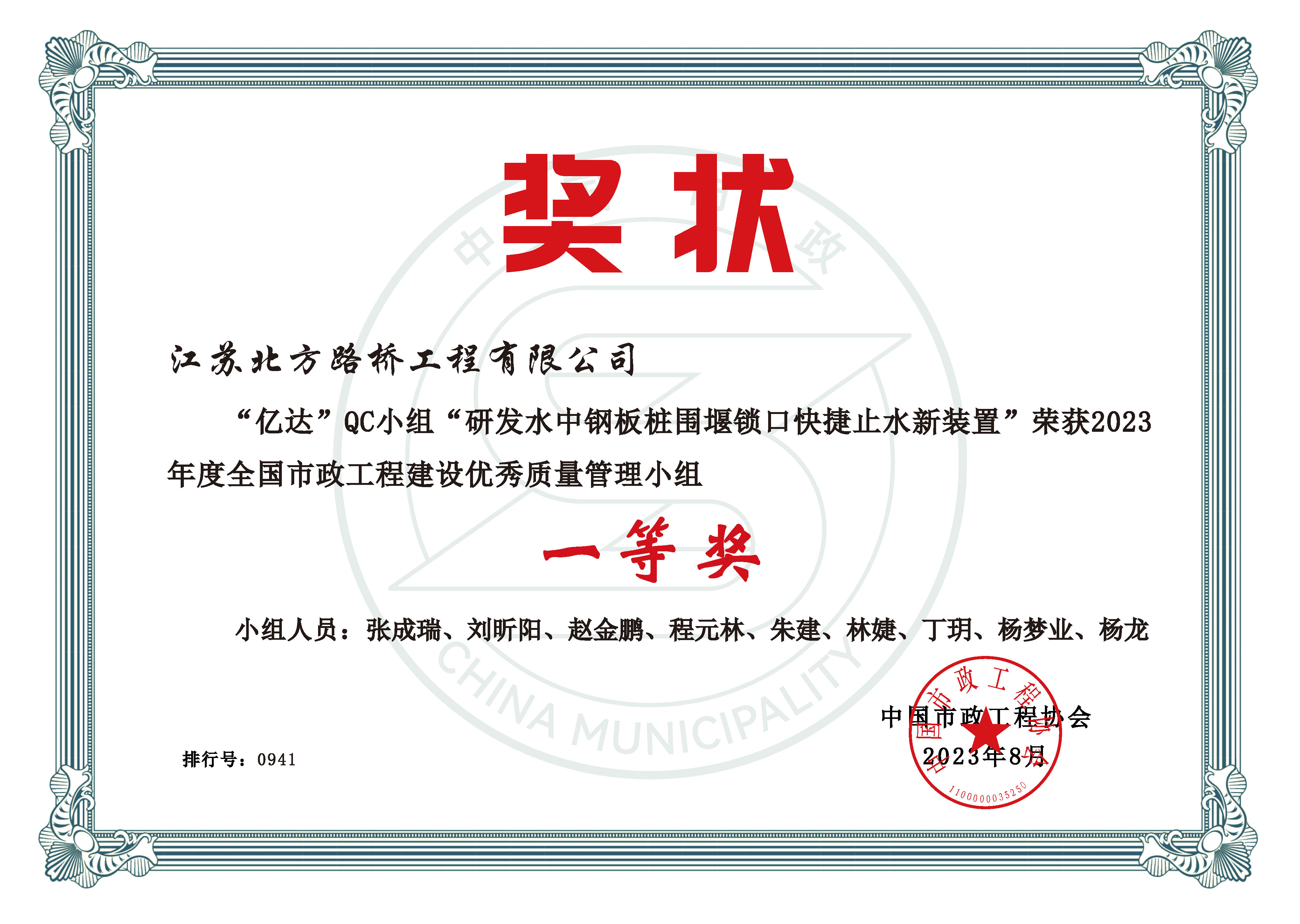 小組獲獎(jiǎng)名單,北方路橋申報(bào)的億達(dá)QC小組課題成果《研發(fā)水中鋼板樁圍堰鎖口快捷止水新裝置》